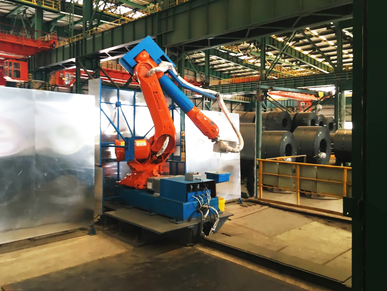 4、防塵防高溫設(shè)計(jì)。針對(duì)現(xiàn)場(chǎng)惡劣的環(huán)境,機(jī)器人采用耐高溫材料包裹、視覺(jué)設(shè)備采用防塵及通氣冷卻。